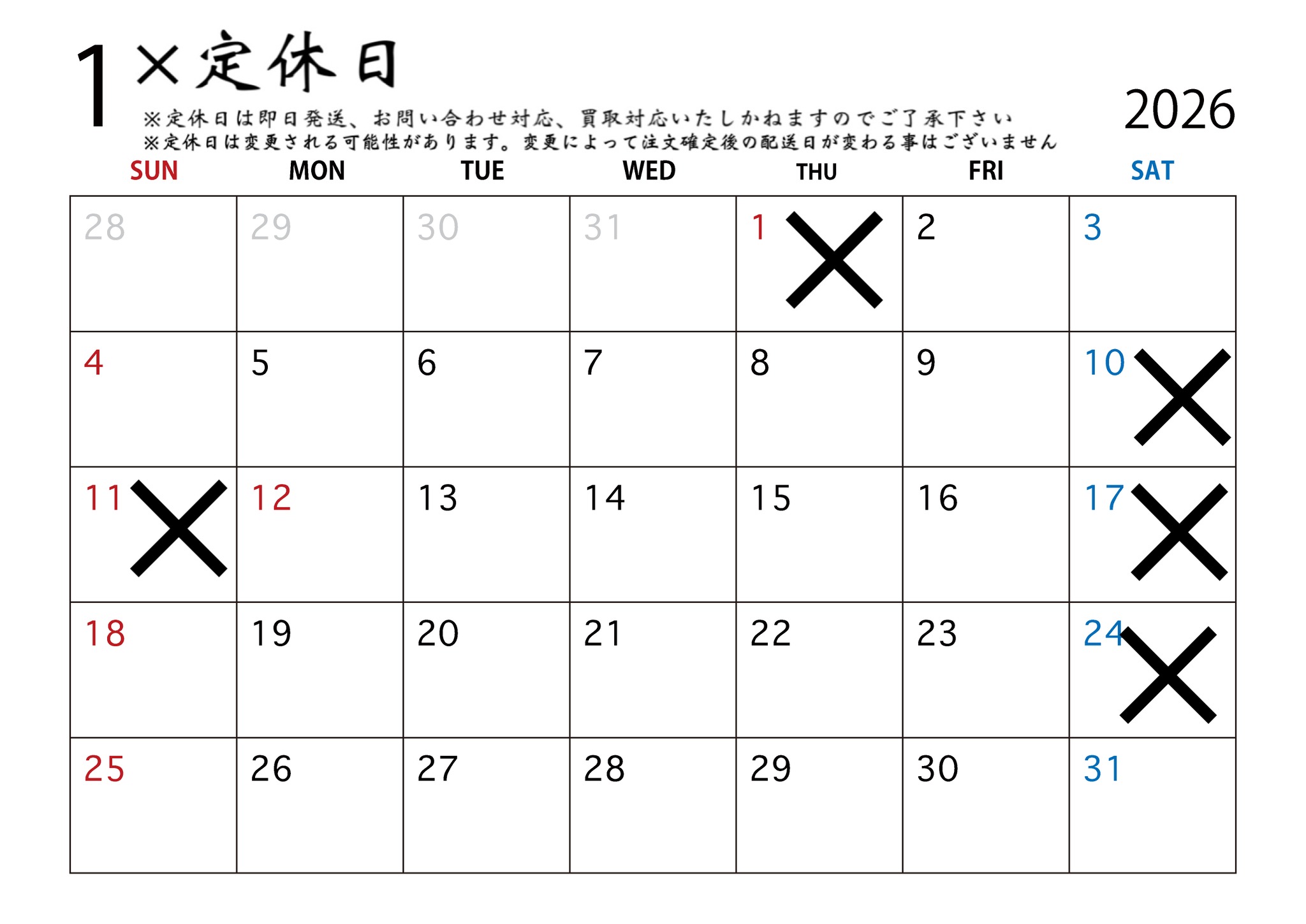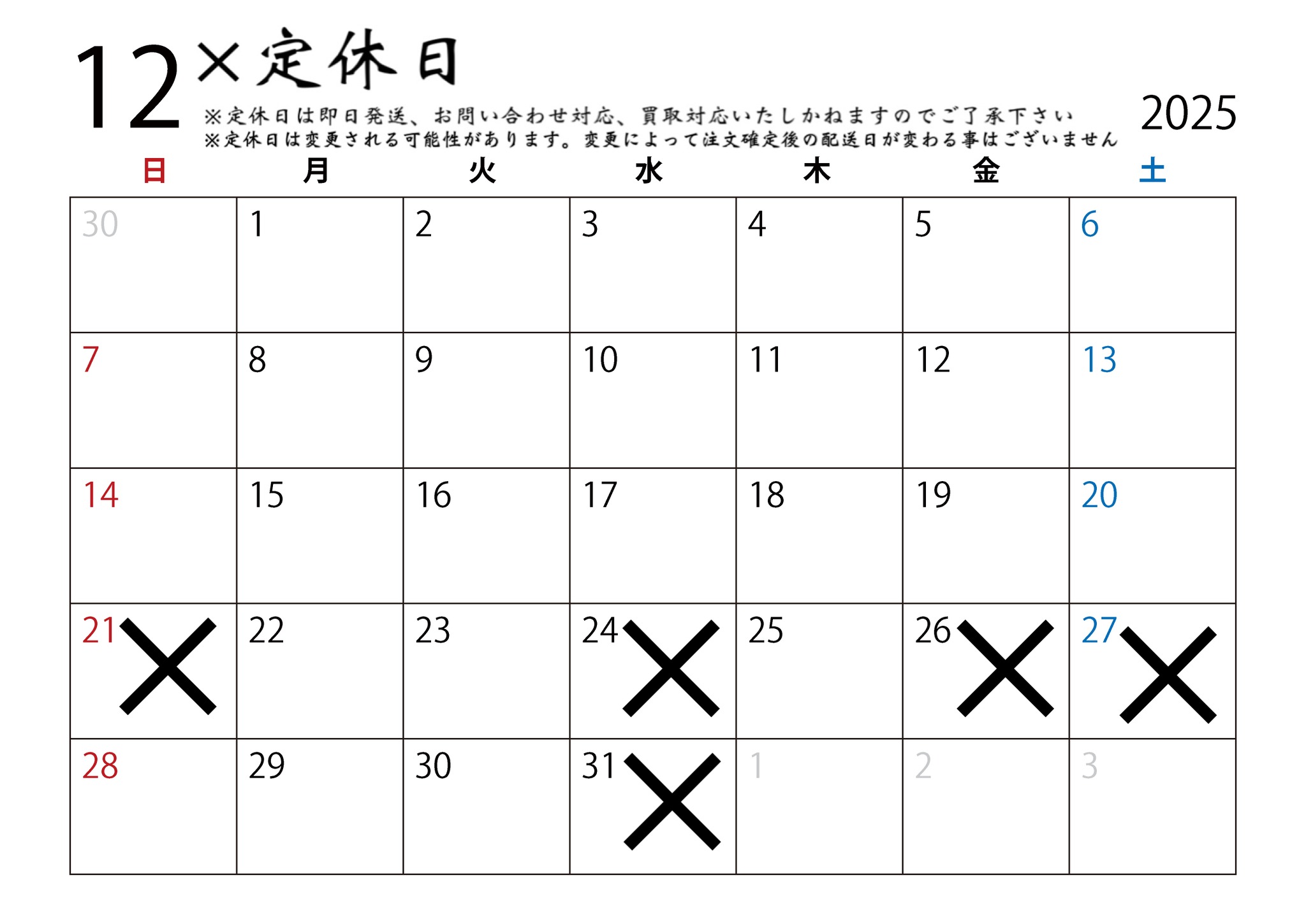 発送カレンダー